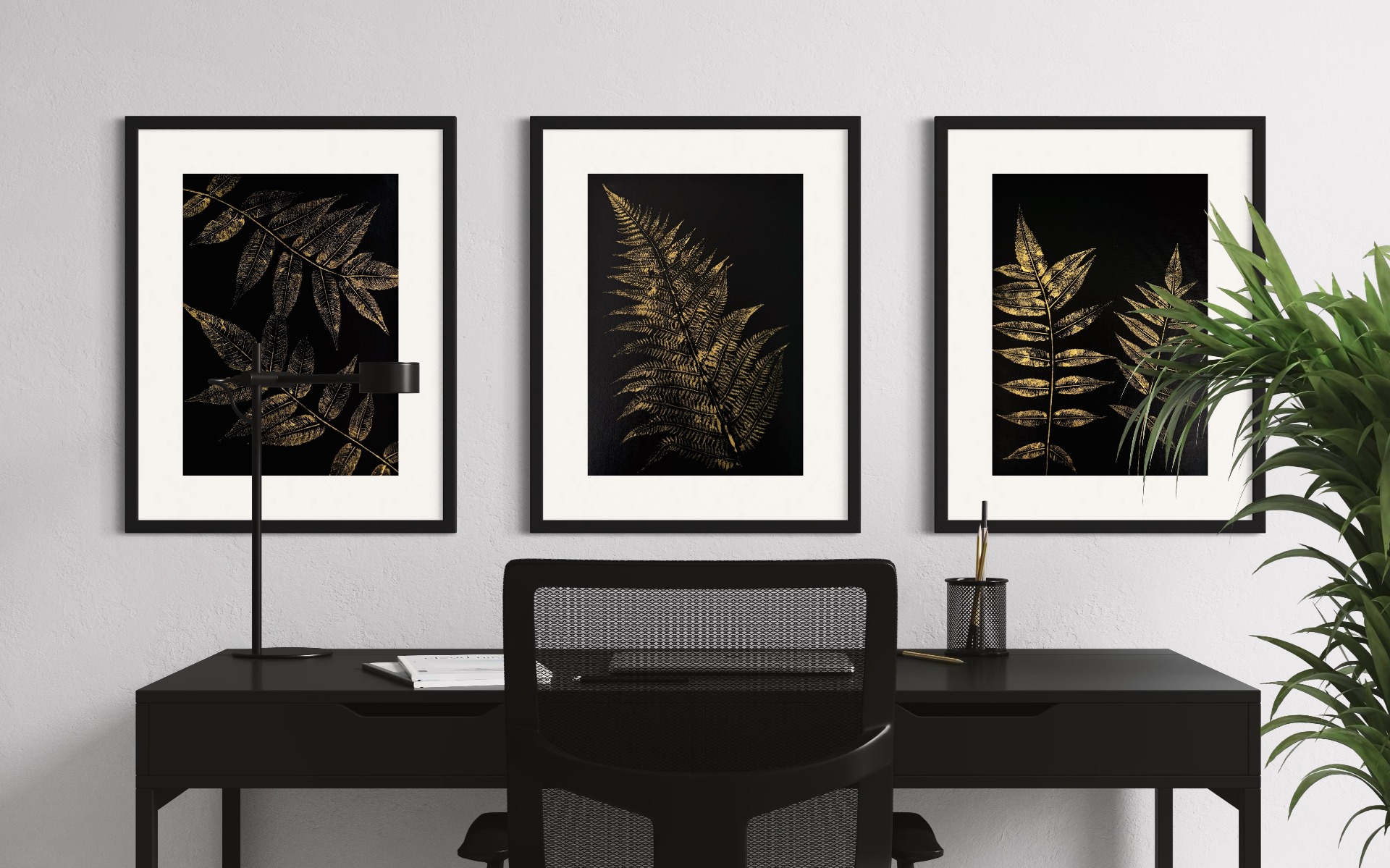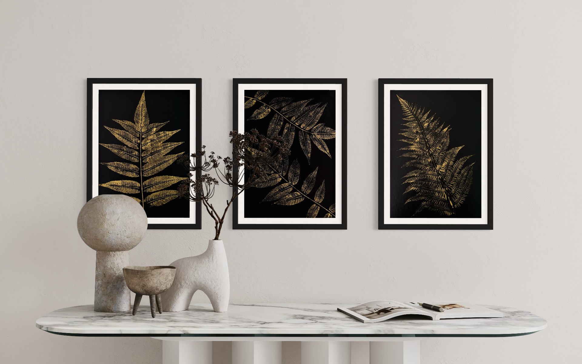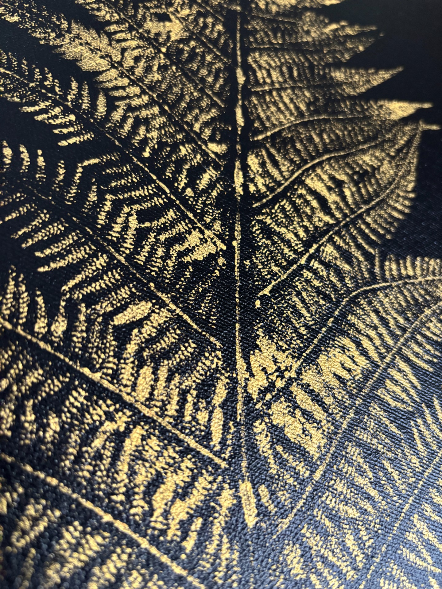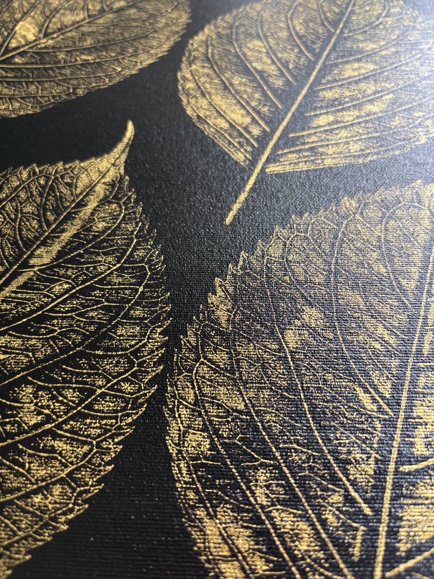 Vytvářím zlaté otisky na černém podkladu – tiché, elegantní a jedinečné.
