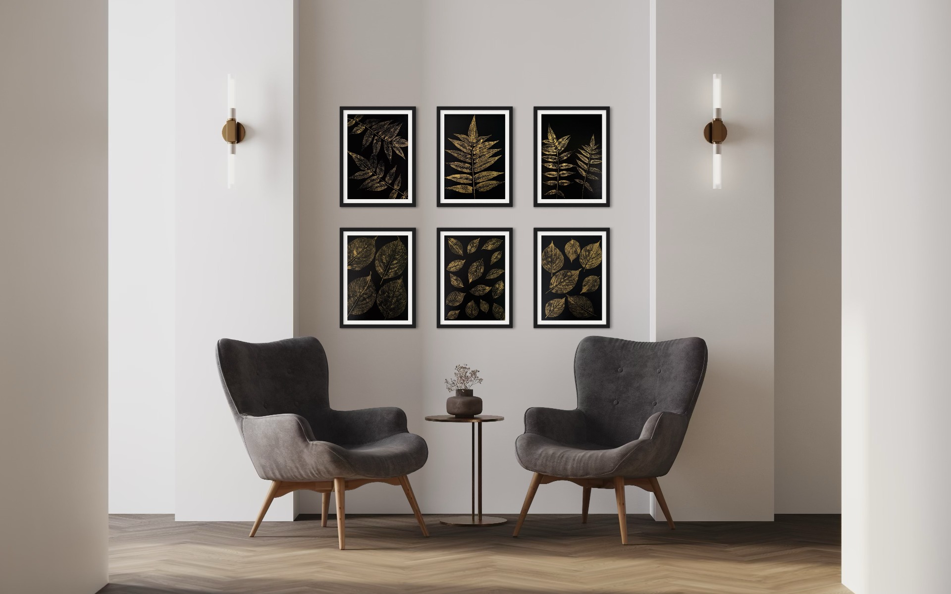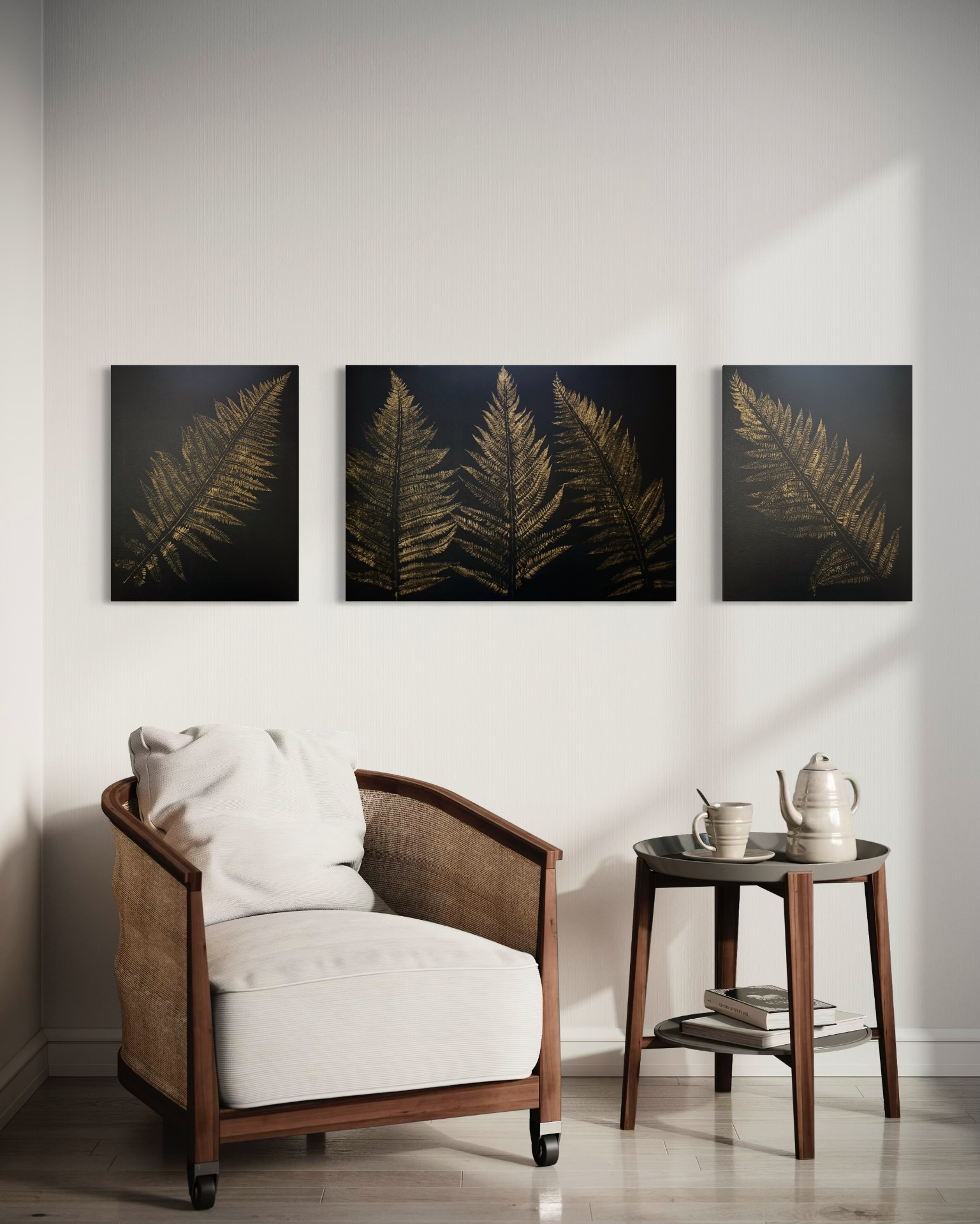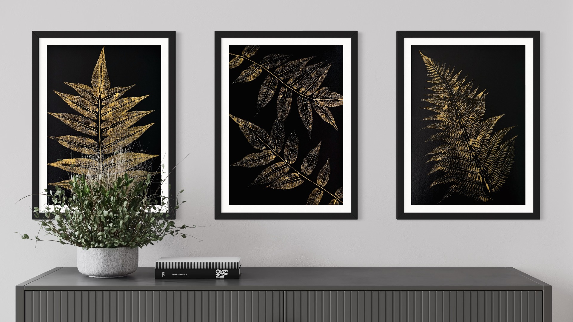 Každý otisk odhaluje jejich přirozenou kresbu a eleganci, zatímco zlatý pigment zvýrazní to, co běžné oko přehlédne.